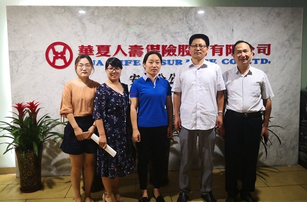 为加强实习基地建设,切实提高实践教学质量,7月3日,就业创业处处长王根杰、副处长王士琅,经济管理学院学管副院长郭玉芳一行前往华夏人寿保险安徽分公司进行考察调研,该公司人事处负责人闫总等热情接待了考察组一行。
