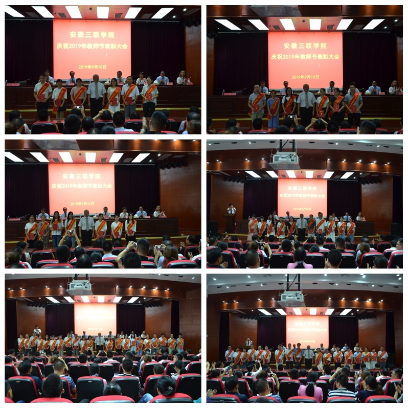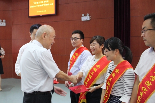 副校长王瑞友宣读表彰文件。大会表彰了安徽省教学名师、省优秀教师、省级先进及竞赛获奖教师,我校第三届星级教师、星级辅导员,校第十四届青年教师教学基本功大赛、第一届“超星杯”移动教学大赛暨智慧课堂教学创新大赛、2017-2018学年优秀教研室等奖项的获得者,共计71人次。金会庆校长为获奖教师颁发荣誉证书并合影留念。