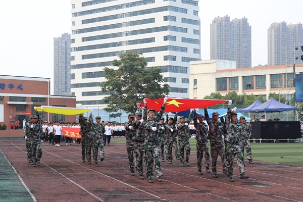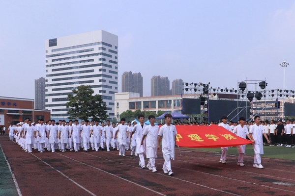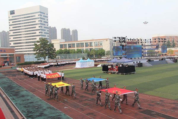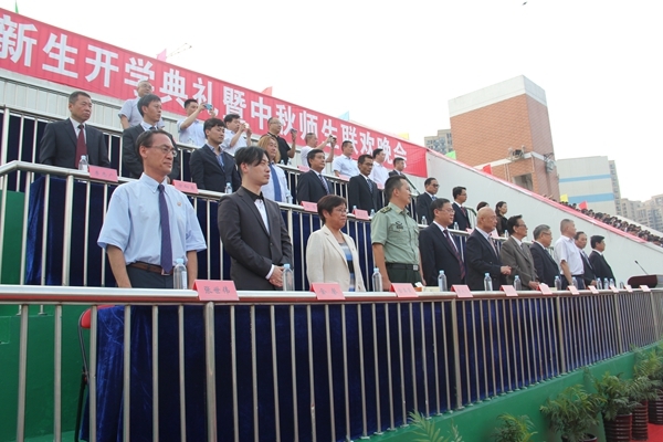 开学典礼在雄壮的国歌和校歌声中拉开序幕,与会人员起立高唱国歌,面向国旗庄严致敬。接着,全体新生入场,踏着欢快的音乐,各学生方阵步伐整齐,口号高亢嘹亮,彰显三联学子的青春活力和昂扬斗志。
