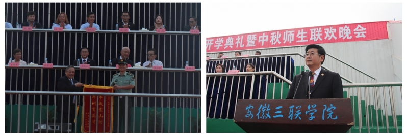 9月12日,我校在主校区体育场举行2019级新生开学典礼暨中秋师生联欢晚会。下午16时,活动第一阶段 “2019级新生开学典礼”正式开始,三联集团及安徽三联学院主要领导金会庆、张方振、余皖生、李明阳、王江波、张树林、金磬、张世伟、金美莲、秦永元、王瑞友、金哲等出席典礼,陆军炮兵防空兵学院曹大飞少校及三联集团所属兄弟单位有关领导等应邀出席典礼,安徽三联学院各级管理干部、教职工、老生代表及全体2019级新生参加典礼。典礼由安徽三联学院党委副书记鲁先长主持。