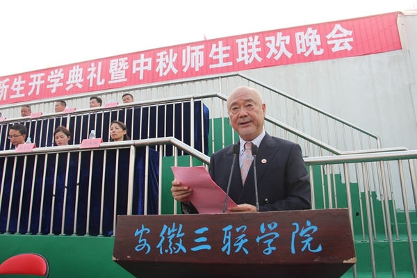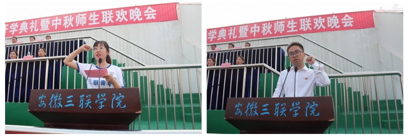 安徽三联学院学生会主席钱燕波带领全体新生宣誓;经济管理学院执行院长傅炜代表全体教师进行宣誓。
