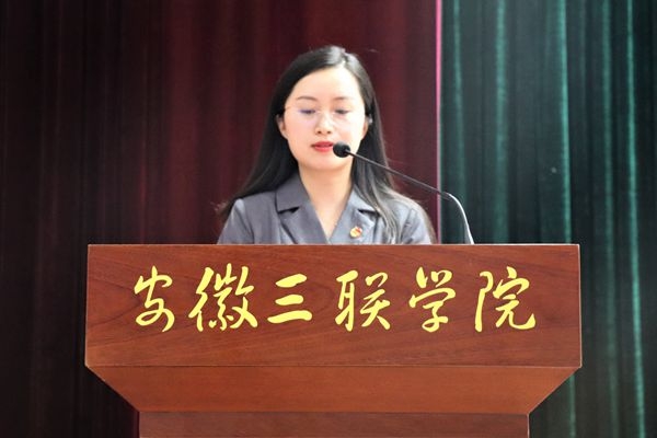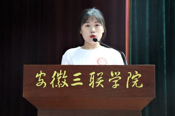 校社团管理委员会负责人刘惠同学,代表全体志愿者发言,呼吁志愿者要全心全意做好世界制造业大会的各项服务工作,为三联学院展现出一张最亮丽的名片。