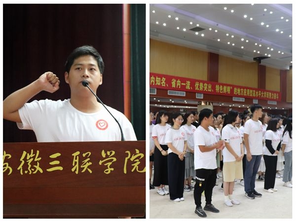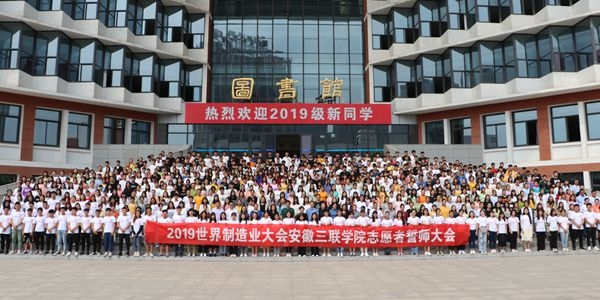 9月17日中午,2019世界制造业大会安徽三联学院志愿者出征誓师大会在我校图书馆多功能报告厅隆重举行。校党委副书记鲁先长,校长助理、教务处处长蔡文芬,校长助理、外语学院执行院长江秀丽,校党委委员、综合办主任占海文,校党委委员、财会学院执行院长宋梦岚,学生处副处长邵敏,各学院党总支书记、团总支书记,以及入选的700余名志愿者参加了本次誓师大会。大会由校团委书记李燕主持。
