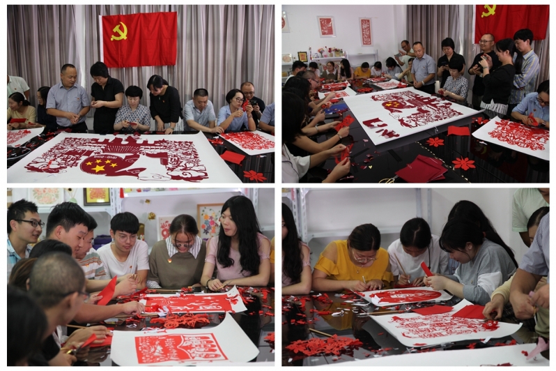为庆祝新中国成立70周年,教育引导全体党员教职工不忘初心、牢记使命,激励教工党员干部在新时代有新担当新作为,9月29日中午,安徽三联学院依托安徽省非物质文化遗产教育传习基地——剪纸艺术研究中心,组织动漫与数字艺术学院党员师生开展“不忘初心 牢记使命”迎国庆70周年主题剪纸艺术活动。