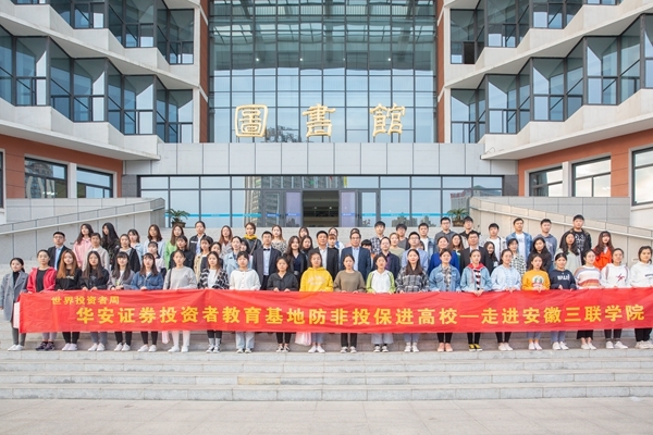 10月16日,由安徽证监局主办,安徽三联学院、华安证券投教基地承办的2019年“防非投报进高校(第四季第一站)”活动在我校成功举办。安徽证监局法制处处长汪晓冰、华安证券工会主席赵春森、安徽三联学院副校长王瑞友等领导及350余名学生参加本次活动。活动由我校财会学院副院长朱海涛主持。