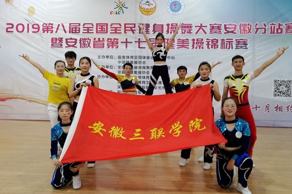 由领队周俊、指导老师王莉和张必瑶以及十名运动员组成的安徽三联学院体育舞蹈队参加了本次大赛,经过激烈角逐,我校代表队从众多参赛队伍中脱颖而出,有氧健身操规定套路、有氧健身操自选套路以及民族健身操规定套路荣获全国一等奖,民族健身操自选套路荣获三等奖。(撰稿、摄影:白彬 编辑:方小庆)