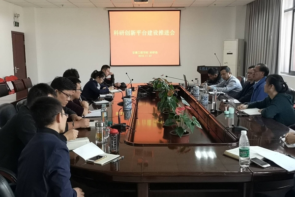 11月7日下午,学校科研创新平台建设推进会议在图书馆五楼会议室举行。副校长张世伟出席会议,各二级学院(部、中心)科研负责人、科研处等相关人员参加会议。会议由科研处处长罗忠主持。