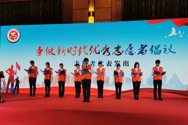 12月5日,由省文明办、民政厅、团省委主办,合肥市民政局协办的2019年"国际志愿者日"宣传暨《安徽省志愿服务条例》发布会在合肥市滨湖隆重举行,会议由省民政厅副厅长耿学梅主持。我校10名志愿者受邀参加本次发布会,并作为我省志愿者代表为“争做新时代优秀志愿者倡议”进行宣誓。