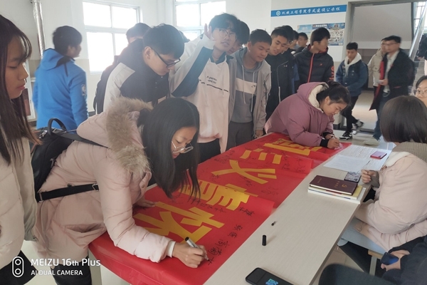 学院通过主题班会、主题宣传板报、在学院和生活区宣传栏张贴海报等形式,加大宣传力度,让学生学习宪法知识、尊法守法。2日晚,院青年志愿者协会分中心学生干部,深入各班自习教室,进行宪法知识普及活动;3日上午,院学生会学生干部在学院教学楼一楼开展以“弘扬宪法精神,厚植爱国主义情怀”为主题的签名倡议活动,广大师生积极参与,现场气氛热烈;4日上午,学院组织各班级组织引导学生通过教育部全国青少年普法网收看网络直播,并同步跟读,加强宪法知识普及。