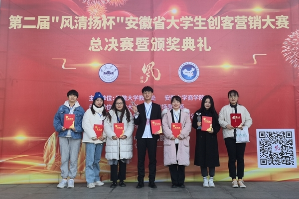 12月29日,由安徽大学主办,安徽风清扬品牌管理股份有限公司、安徽科学家企业家协会联合承办的第二届“风清扬杯”安徽省大学生创客营销大赛总决赛在安徽大学落下帷幕。经过激烈角逐,我校经济管理学院市场营销专业组成的“Real Life”队荣获二等奖,“牛气冲天”队荣获最佳人气奖、优秀奖,“努力凑个热闹”队荣获优秀奖。