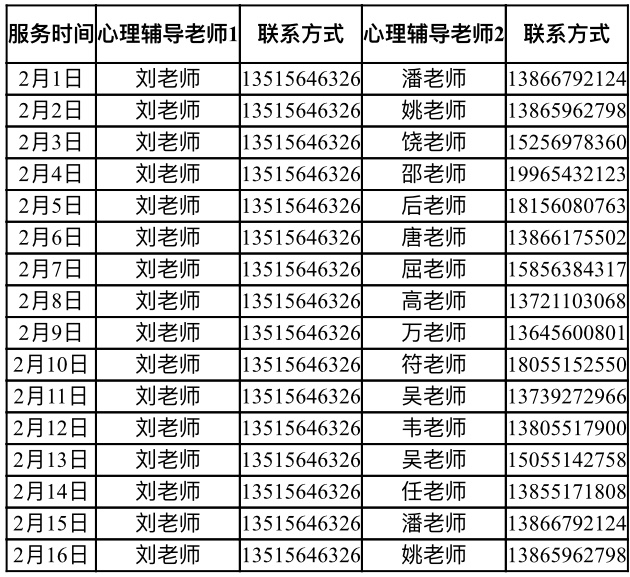 为此,安徽三联学院学生处组织专兼心理辅导老师团队,开通心理支持热线,希望能在疫情期间为师生提供心理支持。具体安排如下: