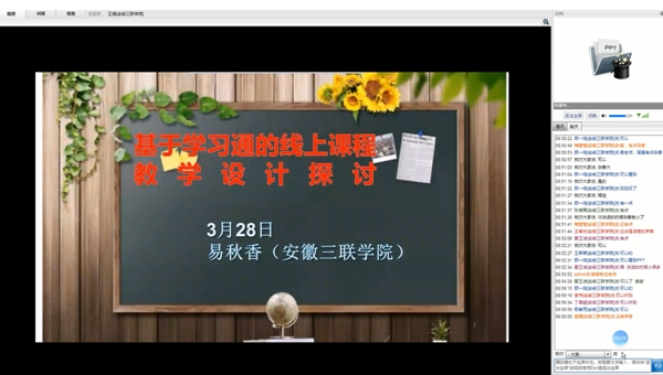 为进一步拓宽教师线上教学设计的思路,帮助教师提高线上课程效果,3月28日上午,安徽三联学院线上教学工作坊直播讲座第三场“基于学习通的线上课程教学设计探讨”,通过校教师在线学习中心平台顺利开展,讲座由校教师发展中心和新营销研习社工作坊共同举办。参加直播讲座的教师有100余人。