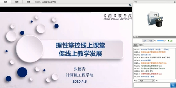 为保障防控疫情期间“停课不停教,停课不停学”活动的顺利进行,促进线上教学发展,4月3日,安徽三联学院线上教学工作坊直播讲座第四场“理性掌控线上课堂,促线上教学发展”,通过校在线学习中心平台如期开展,讲座由校教师发展中心和智慧教学工作坊共同举办。