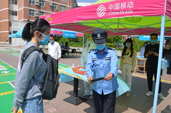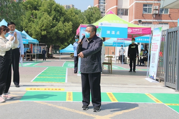 上午十时,演练现场总指挥,党委副书记、副校长鲁先长宣布演练正式开始。本次演练针对疫情防控条件下学生入校流程和学生进宿舍健康检测的突发应急处置,分别在生活区入口、宿舍楼前两个场景进行了模拟。
