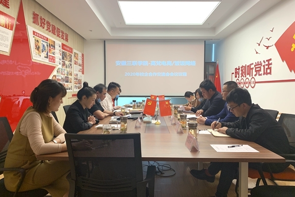 随后徐许总经理介绍了三联高梵电商工作室的建设目标、成立背景、合作特点、资源投入、阶段目标和未来预期收益等。占海文院长就工作室第一阶段的建设和细节问题与企业方进行了深入探讨和交流,表示将主动对接电子商务产业发展,协同合作企业建设产教融合型实训基地,积极拓展不同形式的实践环节,通过工作室的平台,有效提升双师型队伍素质,培养一批创新型电子商务人才,力争取得一定成效。会议就完善共建方案、共建协议签订事宜等达成了初步共识,会后双方进行合影留念。(撰稿、摄影:阮程程 编辑:隋欣)
