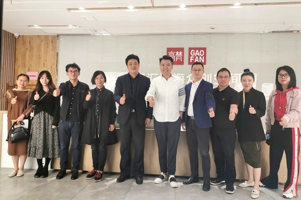 我校一行到达企业后在徐许总经理带领下参观了高梵电商的办公环境和发展历程,对校内工作室和直播间的建设有了更直观的感受。