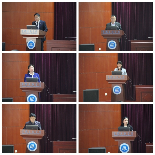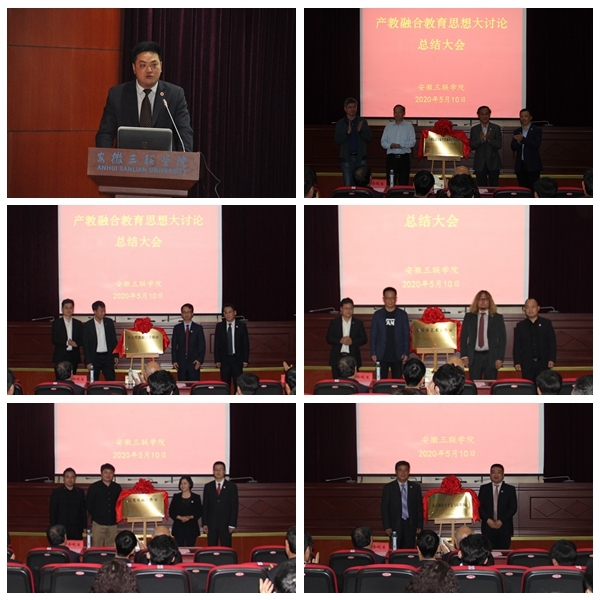 5月10日下午,安徽三联学院“产教融合教育思想大讨论”第四阶段全体会议(闭幕式)暨产教融合平台揭牌仪式在图书馆学术报告厅举行。出席本次会议的主要领导和嘉宾有:三联创始人、校长金会庆教授,校董事长余皖生,科大智能科技股份有限公司智能电气研究院执行院长赵鑫、人力资源总监张茂林,安徽高梵集团副总裁张传耀,安徽饭饭网络服务有限公司总经理徐许、抖音项目负责人赵芮,安徽三联交通应用技术股份有限公司总经理王江波、副总经理张树林、唐毅、赵翀,安徽三联机器人公司总经理梅珑,上海申磬产业有限公司总经理助理范宝斌,安徽竹稞职业教育技术有限公司总经理朱熔、企划部主任赵贵东。在肥的全体校领导、全校副处级及以上干部等参加会议。会议由校党委副书记、副校长鲁先长主持。
