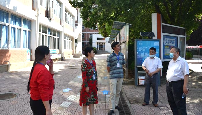为保障首批学生返校复学工作的顺利开展,进一步做好校园疫情防控准备,确保各项工作落实做细,5月19日,学校开展全面摸底排查。省教育督导专员、校党委书记李明阳带队赴主校区对学生返校前各项准备工作进行检查,副校长秦永元,校长助理傅炜,党办主任李斌陪同。校党委副书记、副校长鲁先长,安徽亿华教育投资有限公司副总经理方劲松,综合办主任王峰,保卫处副处长孙宇赴亿华校区检查指导。