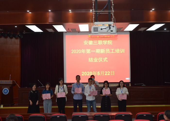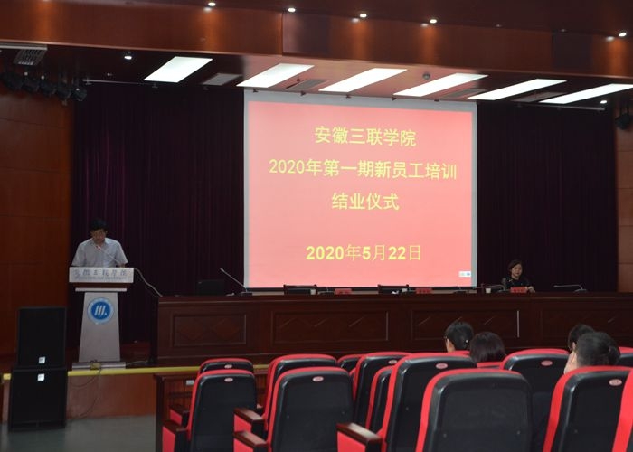 5月22日,安徽三联学院2020年度第一期新员工结业仪式在图书馆学术报告厅举行。校党委副书记、副校长鲁先长,副校长蔡文芬出席仪式。