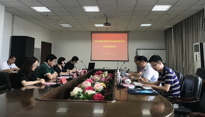 7月3日,安徽省教育招生考试院副院长肖建荣一行来我校检查学校2020年7月全国大学生英语四六级考试防疫工作。校党委副书记、副校长鲁先长,副校长蔡文芬、江秀丽,校长助理傅炜以及校综合办(防控办)、保卫处、总务处(含校医院)、基建与采购处、教务处等部门负责人及有关人员参加此次检查工作。检查分听取汇报和实地考察进行,汇报会由蔡文芬主持。
