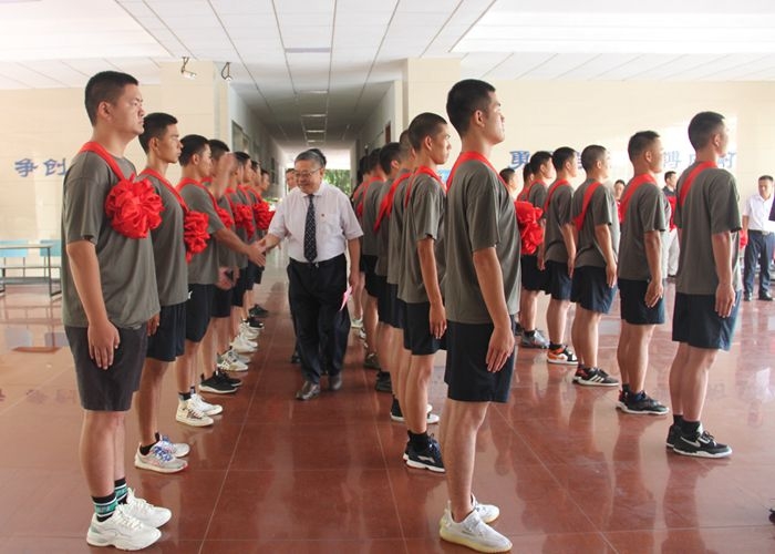 首先,校武装部介绍了今年学校应征入伍的27名大学生的总体情况;校领导与胸带光荣花的入伍大学生一一握手表示祝贺和勉励。