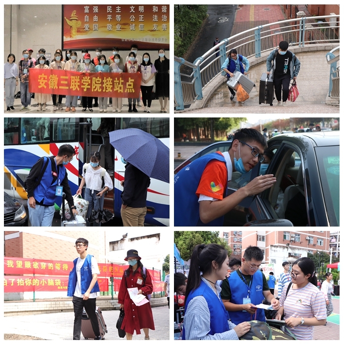 迎新期间,志愿者们的身影随处可见。他们分别在学校门口、行李寄存处、教学楼、宿舍楼帮新生们搬行李并提供咨询和引导服务。同时,我校迎新接站的志愿者们早早到达了火车站、高铁站和长途客运站的服务点,开始了一天的工作。出站口、服务站、上下车处,处处可以看到志愿者们忙碌的身影,他们高举“安徽三联学院”的引导牌,引导新生及家长乘坐迎新专车,指引道路,确保每一位新同学第一时间感受到学院的热情与关怀。青年志愿者们用他们最热情的接待和最周到的服务诠释了“奉献、友爱、互助、进步”的志愿精神,赢得了新生和家长的赞誉,有力地保证了迎新工作的更好开展。