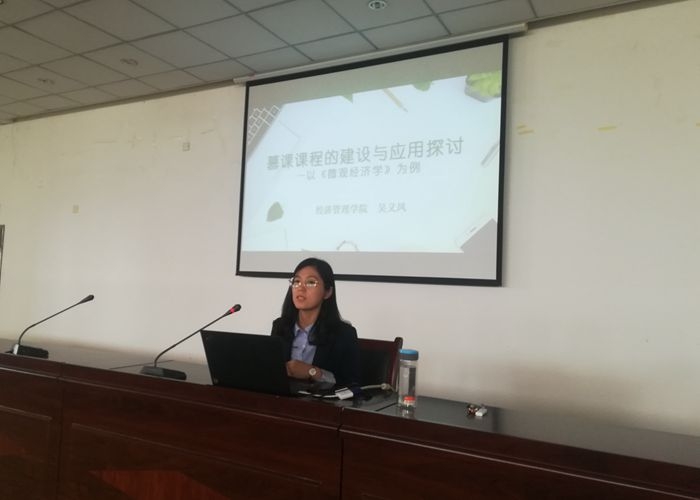 吴教授以慕课发展背景切入,阐述在“互联网+教育”的背景下,慕课作为在线教学的重要媒介作用。接着,吴教授结合本人主持的省级慕课项目《微观经济学》制作经验,从前期准备、设计、建设、制作、应用等方面阐述了慕课制作的理念和方法。同时,吴教授就“慕课+翻转课堂”的模式对线上线下混合式教学展开了深入的剖析,引起了在场教师的共鸣,让大家体验和感悟了课堂教学未来的发展方向。