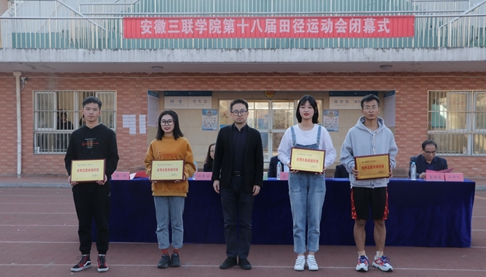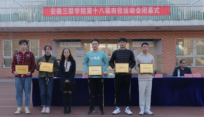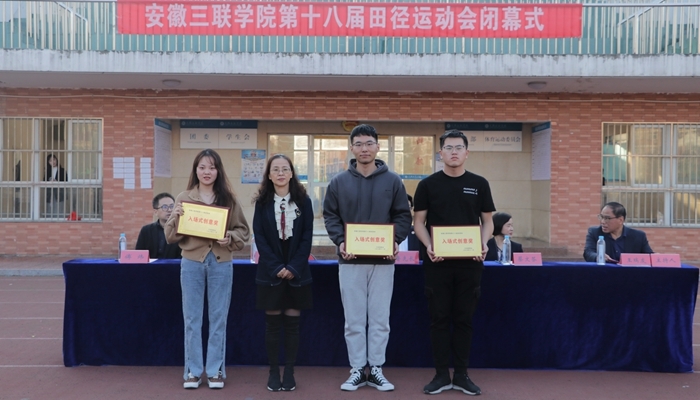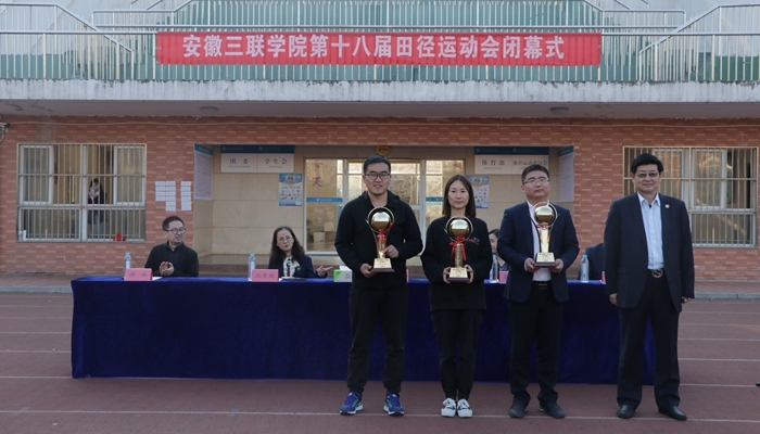 11月6号下午16时,历时两天的安徽三联学院第十八届田径运动会圆满落下帷幕。运动会闭幕式在主校区田径场隆重举行。校党委副书记、副校长鲁先长,副校长蔡文芬、江秀丽,校长助理傅炜等出席本次闭幕式并为获奖单位颁奖。运动会闭幕式由校工会主席王瑞友主持。