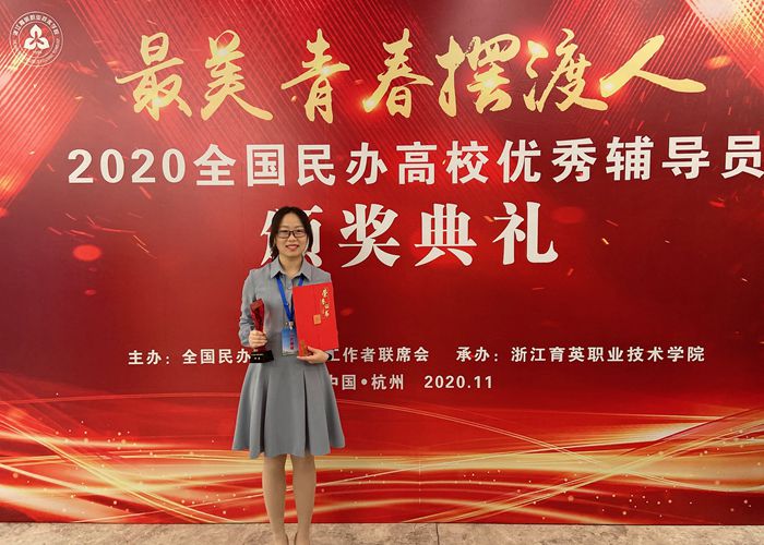 11月21日-22日,第六届全国民办高校辅导员工作高峰论坛在杭州隆重举行。我校电子电气工程学院辅导员田洁荣获“2020全国民办高校优秀辅导员”荣誉称号。