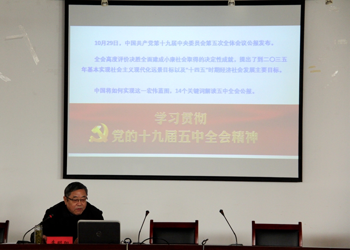 开班仪式后,李明阳作主题为“党的十九届五中全会公报学习体会汇报”专题报告。报告结合自身学习体会,用14个关键词系统解读学习十九届五中全会公报。
