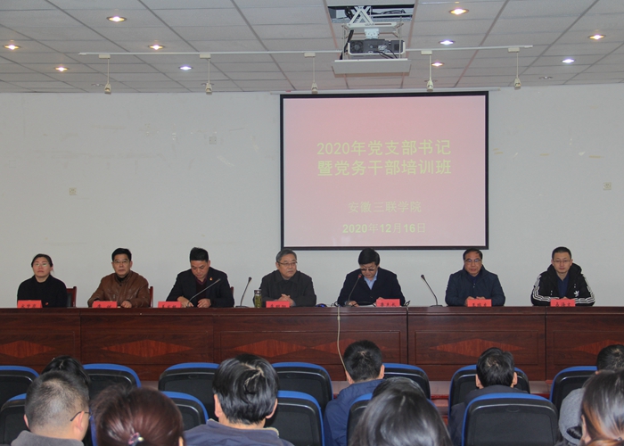 12月16日上午,学校在B01会议室举办2020年基层党支部书记暨党务干部培训班开班仪式。省教育督导专员、校党委书记李明阳出席会议并作动员讲话,校党委副书记、副校长鲁先长,校党委委员、副校长姜发根,校党委委员王瑞友、李斌、占海文、宋梦岚出席会议。学校各二级党组织书记、副书记、组织员,各基层党支部书记、副书记70余人参加会议。开班仪式和专题报告由鲁先长主持。