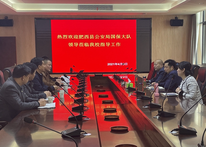 4月8日下午,肥西县公安局国保大队黄邦国一行莅临我校对高校安全工作进行交流调研。副校长秦永元及保卫处、学生处相关领导参加会议。