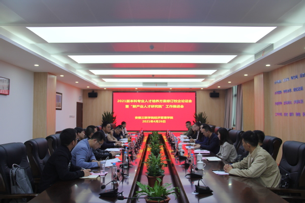 为认真落实人才培养方案修订,持续深化产教融合,4月26日,我校经济管理学院在图书馆412会议室召开了2021版本科专业人才培养方案修订校企论证暨“新产业人才研究院”工作推进会。会议邀请了安徽人和数据有限公司副总经理孙亮亮、安徽人和市场研究咨询有限公司人资总监陶宠等一行到会指导,我校副校长姜发根、蔡文芬出席会议,质量与评估办公室主任赵巍炜、实践教学部部长王力及经济管理学院相关人员参加会议,会议由经济管理学院执行院长占海文主持。