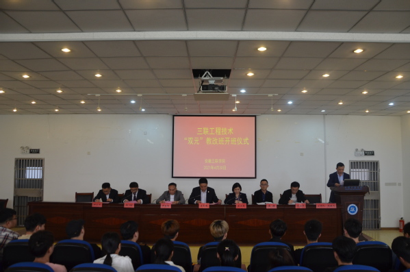 4月30日上午,学校与安徽三联交通应用技术股份有限公司共建的三联工程技术“双元”班在B01报告厅举行开班仪式。三联交通公司副总经理吴岳松、人力资源总监郭珂、人力资源招聘主管柳家牛,学校副校长姜发根、蔡文芬,实践教学部部长王力及交通工程学院相关人员参加开班仪式,会议由交通工程学院执行院长凤鹏飞主持。