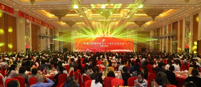 三十而立,擎画三创蓝图;筑梦百年,奋进三联新程。2021年4月30日,安徽三联集团成立三十周年庆祝大会在合肥丰大国际大酒店三楼国际厅隆重举行。来自各省市支持三联创立、建设与发展的社会各界友人及三联员工共计千余人欢聚一堂,追忆三联三十年奋斗历程,共同见证三联筑梦再远航的光荣时刻。