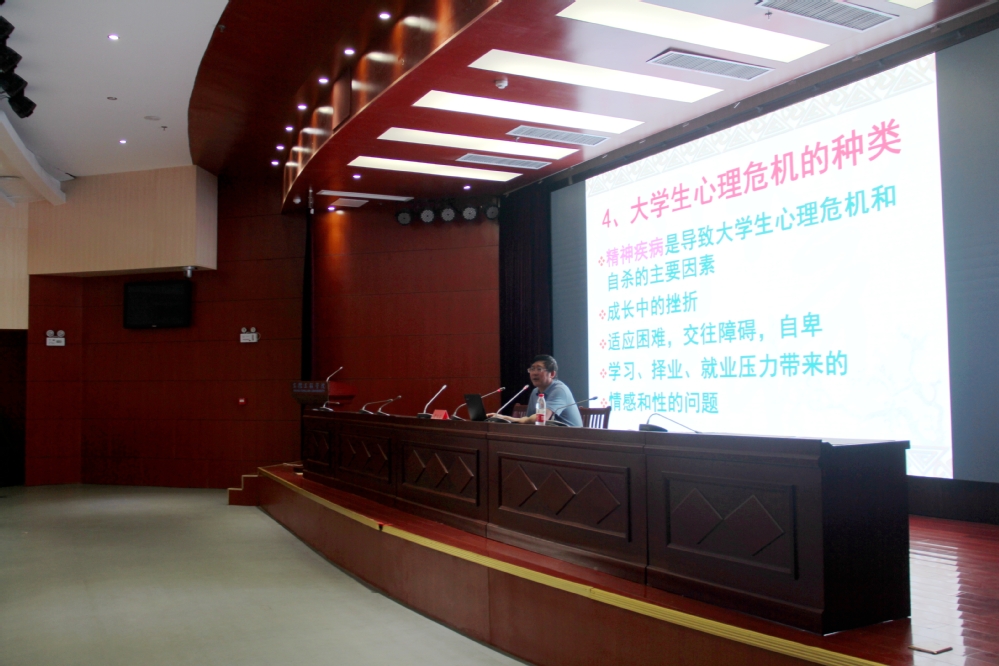 5.25全国大学生心理健康日来临之际,为推动我校心理健康教育工作的深入开展,5月24日上午,学校在图书馆学术报告厅举办了5.25心理健康教育系列活动——大学生心理危机预防与干预培训会,本次培训特邀安徽省精神卫生中心主任医师季益富主讲。各二级学院学管副院长、全体辅导员、班级心理委员、宿舍安全信息员代表共300余名师生参加了培训会。培训会由学生处处长李燕主持。