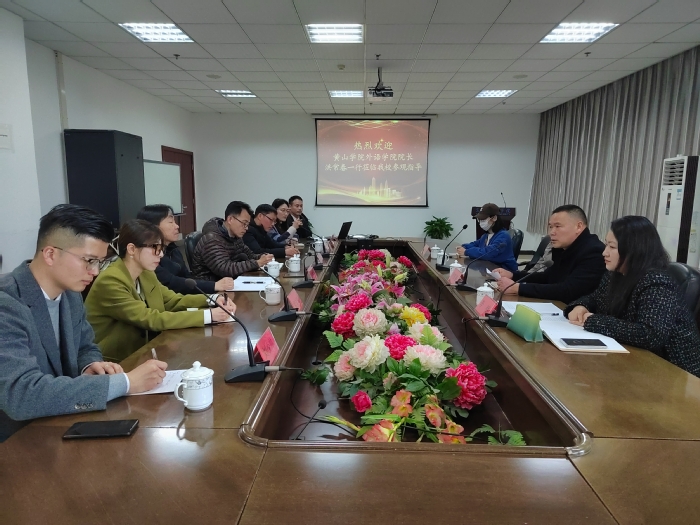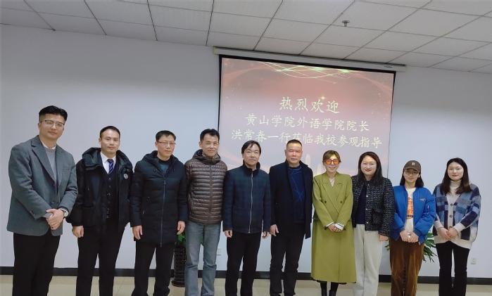 3月1日下午,黄山学院外国语学院院长洪常春一行来我校考察交流。外语学院执行院长赵巍炜、副院长林忠,合肥三联教育咨询有限公司常务副校长胡宝琴及相关人员参加此次交流活动。