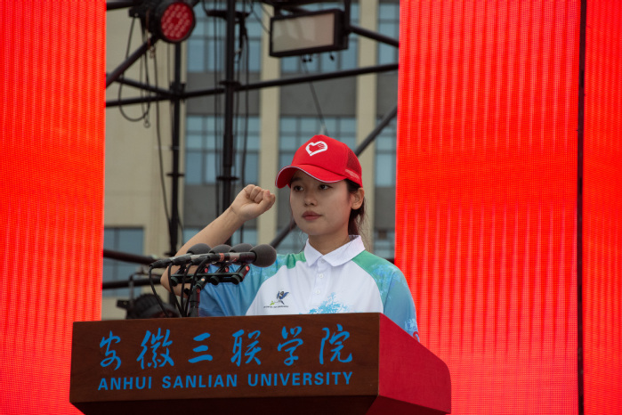 随后,全体志愿者在外语学院2021级英语专业胡小霞同学的带领下郑重宣誓。