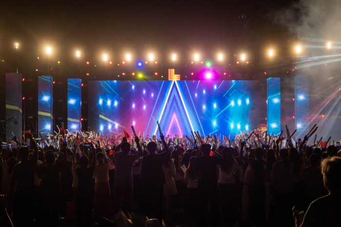 晚会尾声,全场共同高唱《三联歌》和《我和我的祖国》。《三联歌》旋律激昂,唱出了全体三联人的归属感与自豪感;《我和我的祖国》歌声嘹亮,将个人理想与祖国命运紧密相连,也是我校庆祝新中国成立76周年的特别献礼。