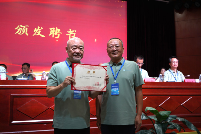 大会第三阶段,宣读校友会第一届理事会组织机构人员名单,王光虎为金会庆颁发会长聘书,金会庆为其他理事会组织机构成员颁发聘书。
