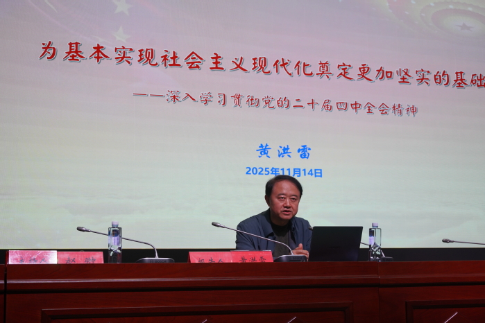 为引导广大师生深刻领会、准确把握党的二十届四中全会精神,11月14日,我校在图书馆学术报告厅成功举办学习贯彻党的二十届四中全会精神专题宣讲报告会。报告会由学校党委副书记、副校长赵翀主持,省委讲师团专家、安徽农业大学马克思主义学院教授黄洪雷担任主讲。