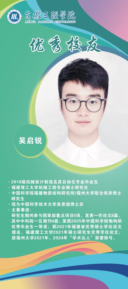 吴启锐以《升学与就业之间的抉择》为题,分享了从安徽三联学院机械设计制造及其自动化专业到中国科学技术大学博士后的学术历程。他聚焦于3D打印水凝胶、多模态智能电子皮肤等前沿领域,已在国际顶级期刊发表多篇第一作者论文,并参与多项国家自然科学基金项目,展现了从“制造”到“智造”的科研跨越。