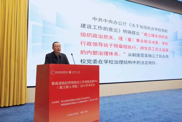 12月12日,省教育督导专员、校党委书记王光虎应邀参加教育部高校思想政治工作创新发展中心(浙江树人学院)2025学术年会。