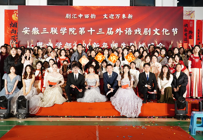 12月30日晚,安徽三联学院第十三届外语戏剧文化节在大学生活动中心顺利举行,本届文化节以“剧汇中西韵,文迎万象新”为主题,通过戏剧展演融合中西文化,以文艺创新迎接崭新气象。副校长蔡文芬为获奖团队颁奖,教务处、校团委、文学部负责人及师生代表400余人齐聚一堂,以戏剧为媒共迎新年。